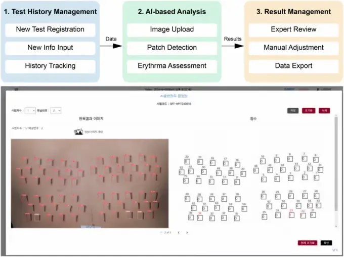 연구팀은 최신 딥러닝 기반 객체 탐지 알고리즘인 YOLOv5x를 적용해 패치 테스트(Patch Test) 이미지에서 피부 자극 반응을 자동 진단하는 모델을 구현했다. 이를 위해 전문가가 0~4점의 자극 점수를 부여한 총 8만3629건의 피부 데이터를 학습시켰으며, 별도의 평가 데이터(1312건)와 검증 데이터(1536건)를 활용해 성능을 검증했다. 그 결과 AI 모델은 24시간 및 48시간 시점에서 모두 98.3%의 정확도를 달성했고, 무자극(0점) 판별 민감도는 99.7%에 이르러 전문가 수준의 신뢰성을 확보했다.