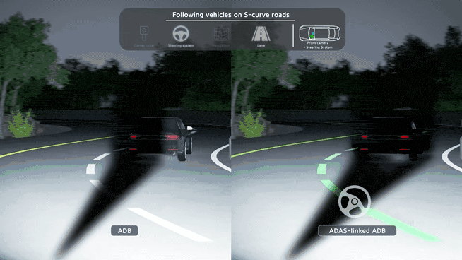 특히 급격한 커브 구간, 뒤에서 추월하는 상황, 차량이 빠르게 선회하는 순간 등 복잡한 주행상황에서도 정확도를 유지하도록 알고리즘을 강화했다. 이 결과 기존 ADB 대비 평균 93%의 눈부심을 차단하면서 운전자 시야 확보는 35% 향상되는 것으로 나타났다.