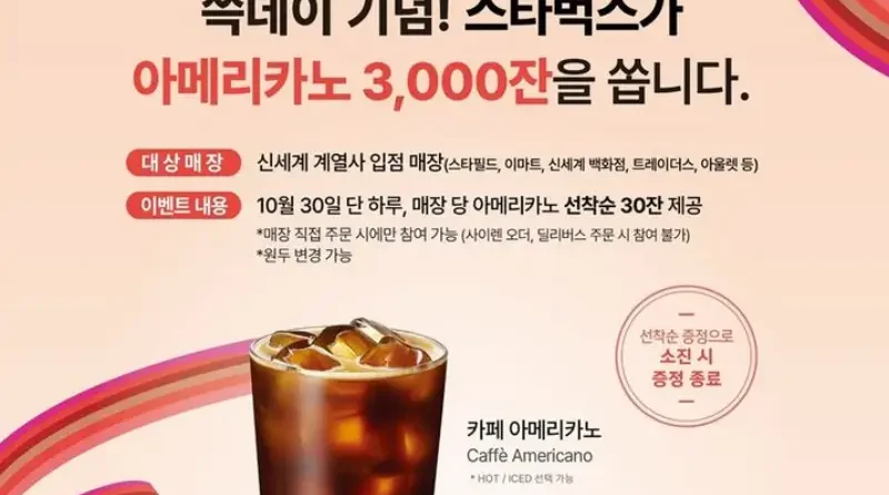 더 읽어보기스타벅스 코리아가 신세계그룹의 ‘2025 대한민국 쓱데이’(10월 30일~11월 9일)에 맞춰 대규모 고객 이벤트를 펼친다. 전국 주요 매장에서 아메리카노 3000잔을 무료로 나누는